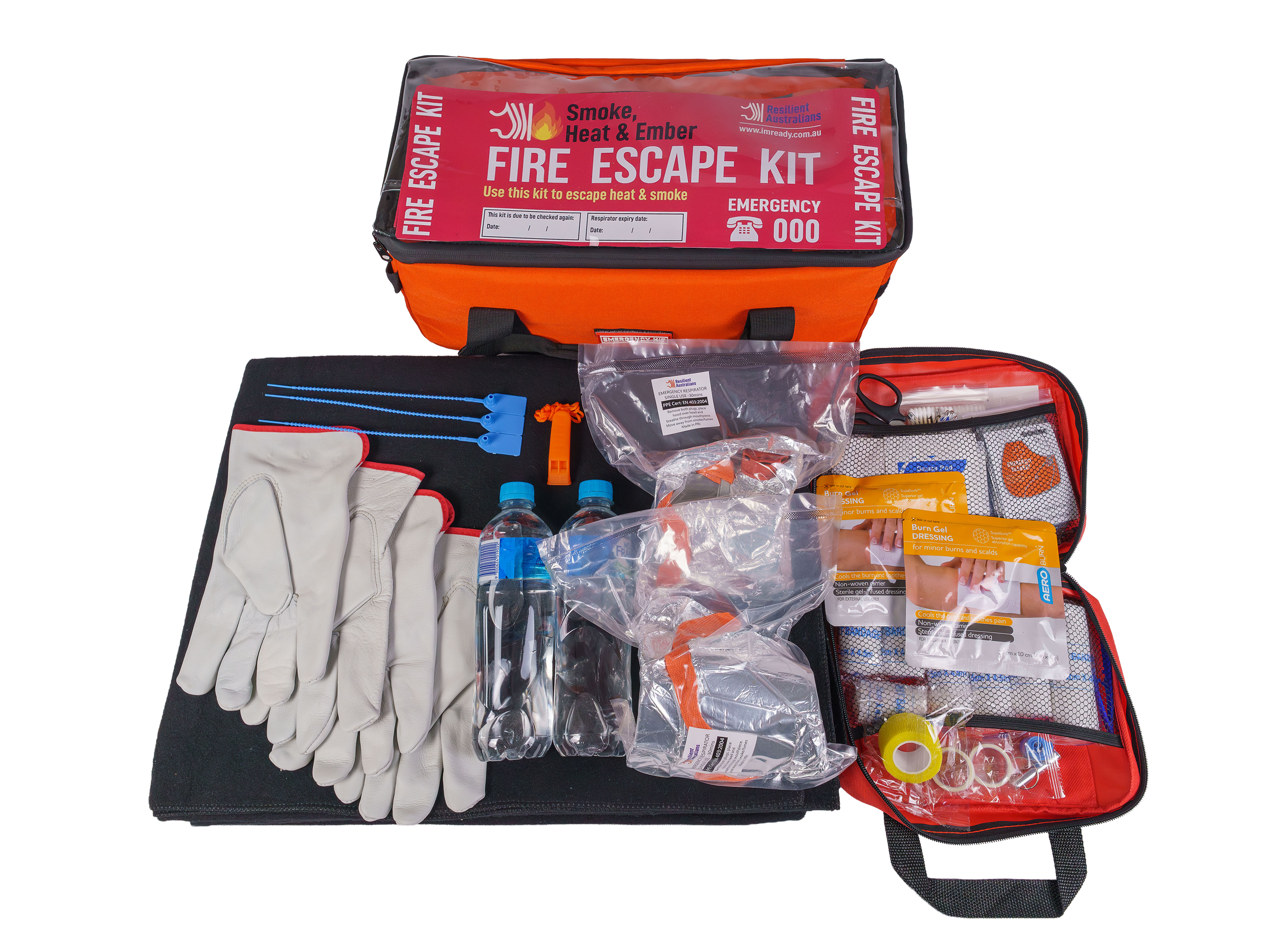 Resilient Australians Fire Escape Kits are designed to assist should you ever be unexpectedly be impacted by fire and need to escape. These kits do not provide protection from fire, but will assist with the smoke, heat and embers you may experience when escaping from a fire.
